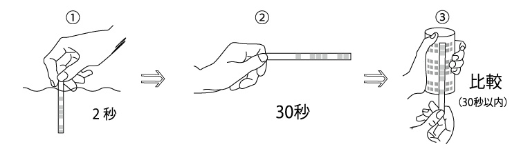 ②余分な水を振り落とし、試験紙を水平状態で30秒間待ちます。